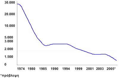 Ο δείκτης πορείας του πληθυσμού για την Ελληνική Μειονότητα της Κωνσταντινούπολης σύμφωνα με στοιχεία των εκκλησιαστικών επιτροπών ενοριών καθώς και απο εκτιμήσεις του Ελληνικού προξενείου στην Κωνσταντινούπολη