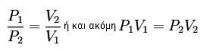 Για τις μεταβολές πίεσης και θερμοκρασίας αν P1 η αρχική πίεση του αερίου, V1 ο αρχικός ειδικός όγκος του και T η σταθερή θερμοκρασία του και προκληθεί μεταβολή της πίεσης και του όγκου του σε P2 και V2 κατά τρόπο που η θερμοκρασία μείνει αμετάβλητη, τότε μεταξύ των παραπάνω στοιχείων του αερίου θα ισχύει η μαθηματική σχέση: