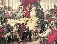 Μαζικός Γάμος Ελλήνων και Περσίδων από κρατική λογική Γάμος αντί για εκτέλεση και εκδίκηση. 0 Αλέξανδρος παίρνει την Βαρσίνη για γυναίκα του, την κόρη του ηττημένου βασιλιά της Περσίας του Δαρείου του Τρίτου. Φωτο: Από το περιοδικό του Αμβούργου ΣΤΕΡΝ, Φεβρουάριος 2003.