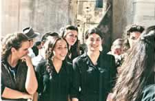 Φωτογραφία 1. Θελκτικές και χαμογελαστές Συρακούσιες μπροστά στο δωρικό ναό της θεάς Αθηνάς 480 π.Χ. της αρχαίας πόλης Ορτυγίας ,