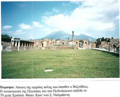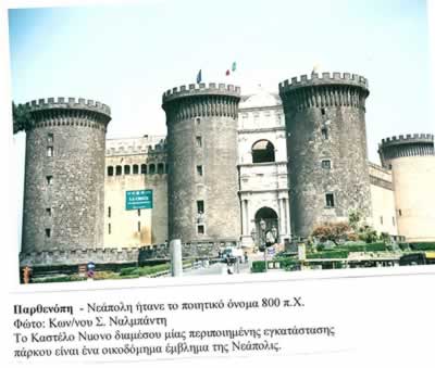 Παρθενόπη – Νεάπολη ήτανε το ποιητικό όνομα 800 π.Χ. Φώτο: Κων/νου Σ. Ναλμπάντη Το Καστέλο Nuovo διαμέσου μίας περιποιημένης εγκατάστασης πάρκου είναι ένα οικοδόμημα έμβλημα της Νεάπολις. Οι Έλληνες ήτανε ρωμαίοι πολίτες με ελληνική γλώσσα. Οι Έλληνες επιτρεπότανε επίσης ως ρωμαίοι πολίτες να έχουν ένα Προνόμιο, που τους καθιερώθηκε από το 89 π.Χ. να διατηρούν χωρίς περιορισμό τη γλώσσα, τα ήθη και έθιμά τους. Νεάπολη, Galleria Umberto I ένα γενναιόδωρο μοντέρνο κέντρο αγοράς και στοά καταστημάτων. Φώτο: Ο-Γ. Ναλμπάντη Πομπηία: Άποψη της αρχαίας πόλης και όπισθεν ο Βεζούβιος. Η καταστροφή της Πομπηίας και του Herkulaneum επήλθε το 79 μετά Χριστού. Φώτο: Κων/ νου Σ. Ναλμπάντη