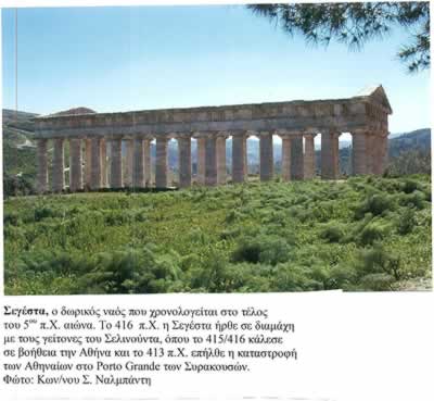 Σεγέστα, ο δωρικός ναός που χρονολογείται στο τέλος του 5ου π.Χ. αιώνα. Το 416 π.Χ. η Σεγέστα ήρθε σε διαμάχη με τους γείτονες του Σελινούντα, όπου το 415/416 κάλεσε σε βοήθεια την Αθήνα και το 413 π.Χ. επήλθε η καταστροφή των Αθηναίων στο Porto Grande των Συρακουσών. Φώτο: Κων/νου Σ. Ναλμπάντη