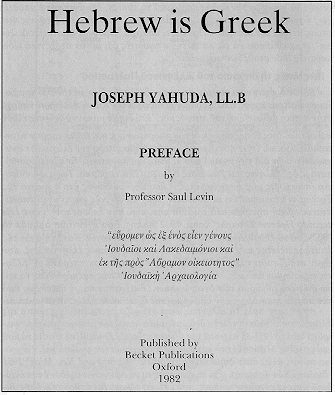 Το βιβλίο προλογίζει ο Εβραίος καθηγητής Αρχαίων Γλωσσών στο Πανεπιστήμιο της Νέας Υόρκης (από 1962) Saul Levin. Ο συγγραφέας J. Yahuda, υποστηρίζει, ότι Overwhelming evidence proves conclusively that Biblical Hebrew is camouflaged Greek in grammar as well as vocabulary (αναντίρρητη απόδειξη επιβεβαιώνει τελικώς ότι τα Βιβλικά Εβραϊκά είναι κεκαλυμμένα Ελληνικά τόσον στη γραμματική όσον και στο λεξιλόγιο) και ότι by and large, the difference between them is a matter of pronunciation. So much that Hebrew cannot be properly understood except through Greek (γενικώς η διαφορά μεταξύ τους είναι θέμα προφοράς. Τόσο πολύ ώστε τα Εβραϊκά δεν δύνανται να καταστούν εντελώς αντιληπτά παρά μόνο μέσω των Ελληνικών).