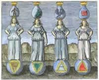 Η πορεία αυτή της εξέλιξης προς το θείο, μπορεί να ιδωθεί και μέσα από την αναβατική πορεία κάθε στοιχείου. Έτσι έχουμε: