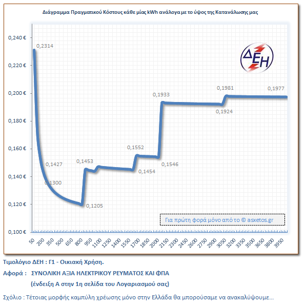 Διάγραμμα Πραγματικού Κόστους κάθε μίας kWh ανάλογα με το ύψος της Κατανάλωσης μας
