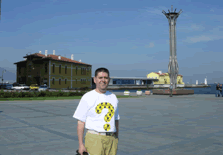 Ο Χρ. Μυστιλιάδης στη Σμύρνη μπροστά στο ιστορικό Πασαπόρτ. Παρά τις ζημίες από τη φωτιά , στέκει ακόμη