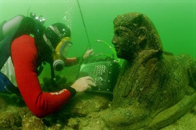 Ο υποθαλάσσιος αρχαιολόγος Franck Goddio,ανακάλυψε τα τελευταία δέκα χρόνια μπροστά στην ακτή της σημερινής Αλεξάνδρειας καθώς επίσης και στον κόλπο ABUKIR εξέχοντα ευρήματα της αιγυπτιακής ιστορίας από το 700 π.Χ. μέχρι το 800 μετά Χριστόν. Αυτά είχαν βυθισθεί στη θάλασσα προ χιλίων ετών μετά από πολλές καταστροφές. Μεγαλειώδη αγάλματα, επίσης κέρματα, κοσμήματα και αντικείμενα λατρείας κατατοπίστηκαν και σε μακροχρόνια εργασία με νεότερες μεθόδους ανασύρθηκαν.