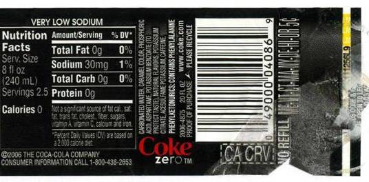 Όπως βλέπουμε στα συστατικά πάνω στην ετικέτα στην Ελληνική Zero, μία από τις γλυκαντικές ουσίες είναι το κυκλαμικό οξύ. Σε άλλα αναψυκτικά, η υποκατάστατα ζάχαρης, μπορεί να περιγράφεται σαν κυκλαμικό νάτριο. Όπως όμως βλέπουμε στις εικόνες , από την ετικέτα μιας ZERO που αγοράστηκε από την Αμερική, το κυκλαμικό οξύ ΔΕΝ χρησιμοποιείται σαν γλυκαντικό.