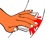 - Εφαρμόζουμε σταθερή και ισχυρή πίεση στο τραύμα με τη βοήθεια γάζας ή κάποιου καθαρού υφάσματος.