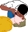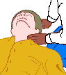 - Προκαλούμε ερέθισμα και ταρακουνώντας του ελαφριά τους ώμους , τον ρωτάμε αν είναι καλά. Αν δεν υπάρχει απάντηση , ταυτόχρονα με το ένα χέρι ανασηκώνουμε το πηγούνι του και με το άλλο γέρνουμε το κεφάλι του προς τα πίσω.