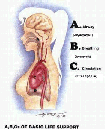 - Δίνουμε 2 αναπνοές και ελέγχουμε αν υπάρχει έκπτυξη του θώρακα. Αν δεν υπάρχει τότε μάλλον έχουμε απόφραξη αεραγωγού.