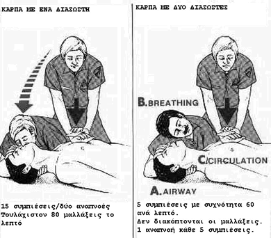 - Αν είμαστε μόνοι κάνουμε 15 μαλλάξεις και δινουμε 2 αναπνοές. Αν έχουμε βοηθό δίνουμε για 5 μαλλάξεις 1 αναπνοή.