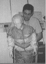 2.Αγκαλιάζουμε το θύμα και του δίνουμε με την παλάμη ανοικτή 5 ισχυρά χτυπήματα στην πλάτη.