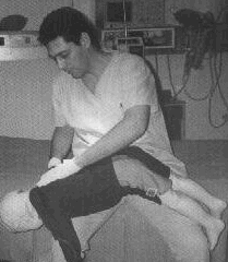 – Ξαπλώστε το βρέφος, με το πρόσωπο προς τα κάτω, πάνω στο βραχίονά σας, στηρίζοντας το κεφάλι του και το λαιμό του με το ένα χέρι. Κρατήστε το κεφάλι χαμηλότερα από το σώμα.