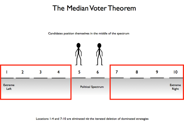 Διότι για τους ψηφοφόρους που έχουν προτιμήσεις για “μικρότερο ποσοστό” (ή αριστέρα του κέντρου , γενικεύοντας) μια επιλογή του “κέντρου” = “μέσου όρου” αποτελεί το “μικρότερο κακό” από μία επιλογή/επικράτηση πολύ “μεγάλου ποσοστού” (ή τέρμα δεξιά , γενικεύοντας) .