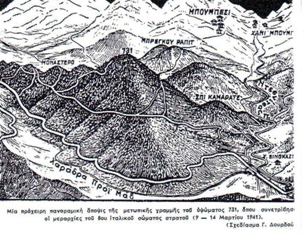 Ένας τιτάνιος αγώνας διεξήχθη στο ύψωμα 731 (υψόμετρο) κατά την «Εαρινή Επίθεση» των Ιταλών στα μέσα Μαρτίου 1941, προκειμένου οι ιταλικές φασιστικές δυνάμεις με την παρουσία του ίδιου δικτάτορα Μουσολίνι -μετά από τέσσερις μήνες πόλεμο – να δρέψουν μία νίκη κατά της Ελλάδας και να κατέβουν μαζί με τις ναζιστικές δυνάμεις των Γερμανών «νικητές» στην Αθήνα! Το 731 όμως, ανέτρεψε τα σχέδια του(ς). Στο ύψωμα αυτό, καθώς και στα γειτονικά υψώματα, πολέμησαν οι άνδρες του 5ου Συντάγματος της 1ης Μεραρχίας πού κατάγονταν κυρίως από την Καρδίτσα και τα Τρίκαλα.