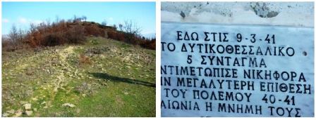 Στο διάστημα από 9 έως 11 Μαρτίου 1941, πενήντα Τρικαλινοί θυσιάστηκαν ηρωικά, υπερασπιζόμενοι το ύψωμα. Η τρίτη μέρα βρίσκει το 5° σύνταγμα Τρικάλων να έχει χάσει 586 άνδρες, περίπου τη μισή του δύναμη. Τρικαλινός ήταν ο πρώτος νεκρός στρατιώτης ονόματι Τσιαβαλιάρης Βασίλειος, Τρικαλινός ήταν και ο πρώτος νεκρός αξιωματικός ονόματι Νικόλαος Γεωργούλας».