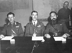 Κατά σύσκεψιν προεδρευθείσαν παρά του Ανωτάτου Συμμαχικού Αρχιστρατήγου του Θεάτρου Μεσογείου, εις A.F.H.Q., καθ’ ην παρευρέθησαν ο Έλλην Πρωθυπουργός μετ’ άλλων μελών της Ελληνικής Κυβερνήσεως καθώς και οι αρχηγοί των Ελλήνων Ανταρτών Στρατηγοί Σαράφης και Ζέρβας. Αι κάτωθι αποφάσεις κατεχωρήθησαν εις τα Πρακτικά, ως γενόμεναι παρά πάντων αποδεκταί.
