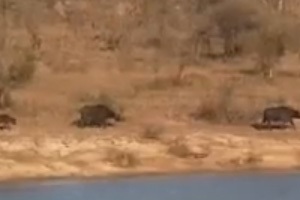 Τα λιοντάρια τελικά θα καταφέρουν να πάρουν το μικρό βουβάλι από τον κροκόδειλο και να το τραβήξουν έξω από το νερό και ενώ τα λιοντάρια ετοιμάζονταν να αποτελειώσουν το θήραμα τους και η μοίρα του μικρού βούβαλου φαινόταν προδιαγεγραμμένη ξαφνικά η αγέλη των βούβαλων θα ανασυνταχτεί και θα επιτεθεί στα λιοντάρια.